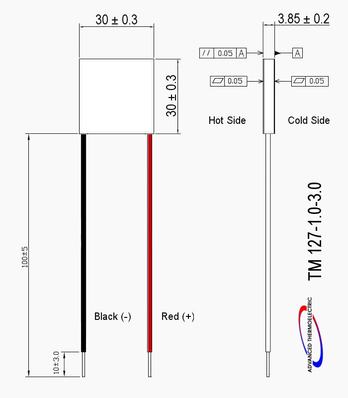 TM 127-1.0-3.0 is versatile single-stage thermoelectric module with a 30 x 30 mm foot-print. Generally, this module is powered by a 12V nominal supply.